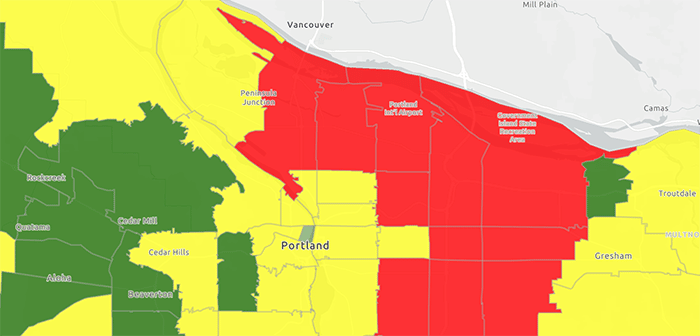 To start with, you can check the Portland, Oregon Radon Risk Map.