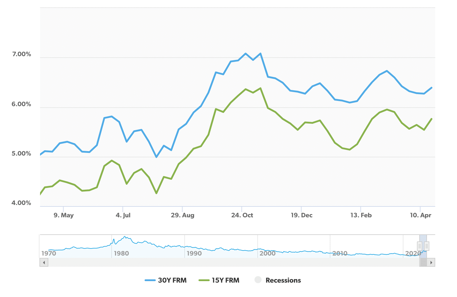 Though mortgage rates have continued to increase, their starting point was the lowest rate in recent history in 2021 – 2.74% for a 30-year fixed mortgage – to their current average of 6.39%. This is still a much lower rate than the average of over 8% in the late 1990s and early 2000s – before that, it had reached over 10%.
